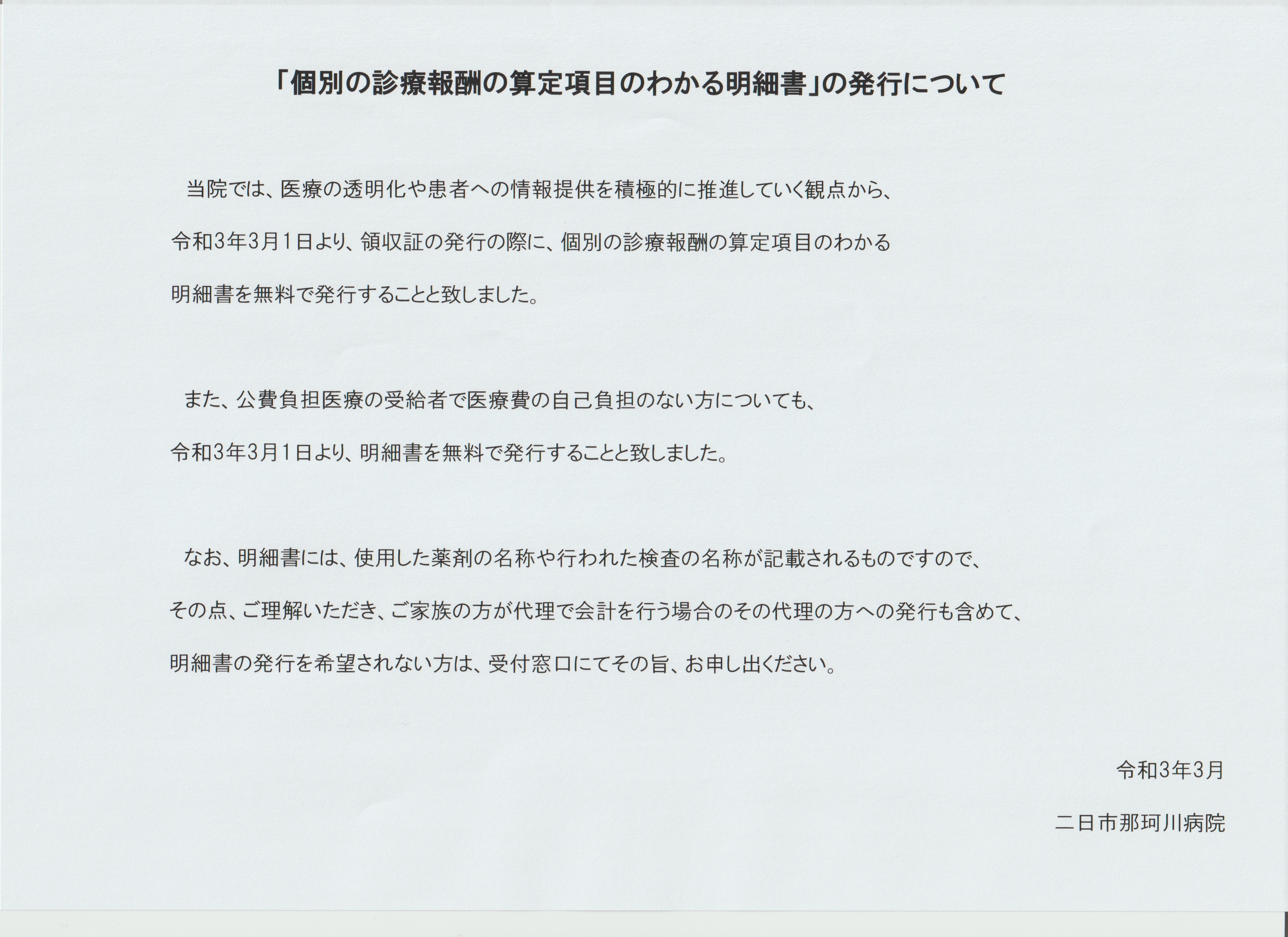 「個別の診療報酬の算定項目のわかる明細書」の発行について